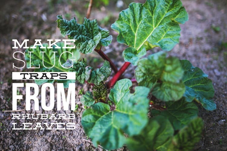 If you grow rhubarb for the tasty stalks, don’t toss the potentially poisonous, inedible leaves on the compost heap. Use them as organic slug traps instead!