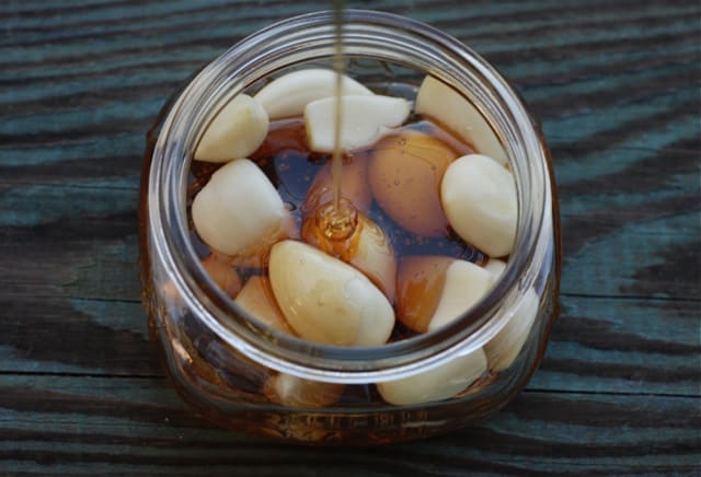 Use a jar size appropriate for the amount you are processing. You’ll need the honey to completely cover the garlic, while leaving a little headroom in the jar.