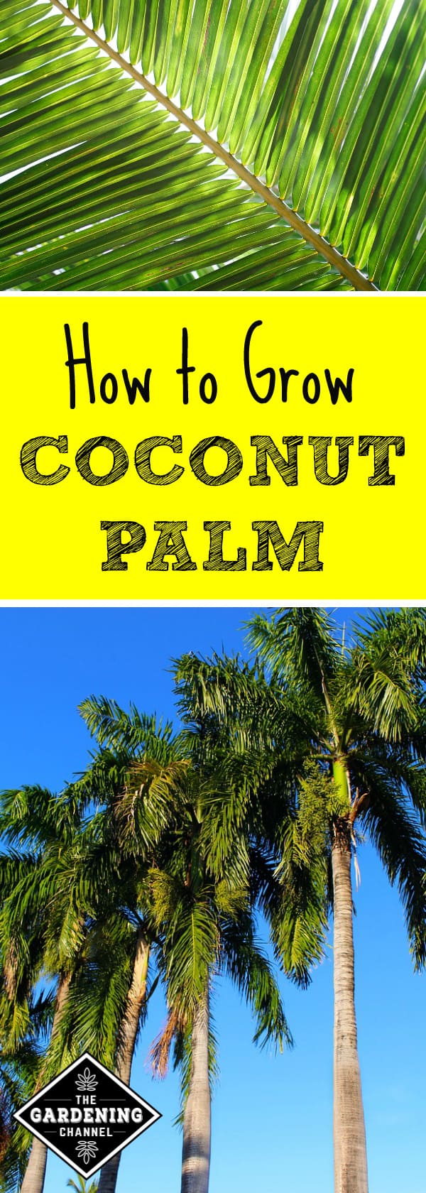The simplest way to grow coconut palms is from a potted nursery plant, but you can grow them from seed. Start with a coconut – the kind you find in the grocery store will do. Place the coconut in a bucket filled with lukewarm water. Use a rock or weight to keep the coconut submerged under water and leave it for three or four days. This soaking softens the coconut and accelerates the germination process.