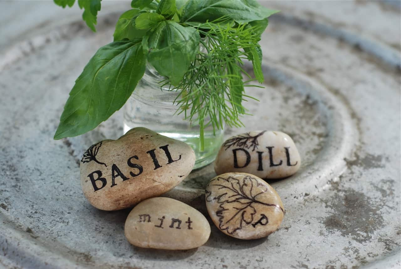 The size of rock will depend on whether the garden marker is for a container or garden. The only limit with this garden marker project is the type of rock you can find. Be on the lookout for cool rocks while traveling.